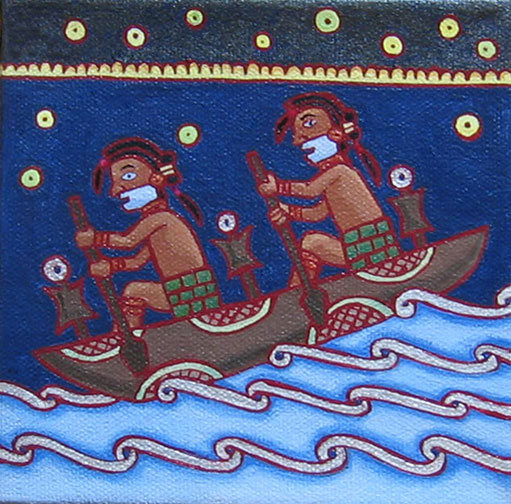Mississippian Float Trip, acrylic and micaceous iron oxide on canvas, 5"x5"