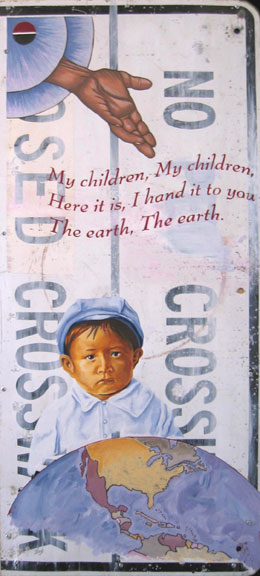 God Gives the World to Arapaho Children, acrylic and mica on steel , 36"x16"