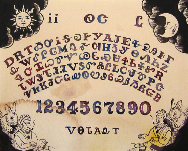 Cherokee Ouija Board, watercolor on paper, 8.5"x11"